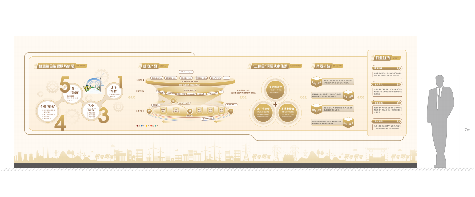 本項目主要負(fù)責(zé)承擔(dān)大型的智慧能源企業(yè),進行內(nèi)部文化墻改造工程,以達到更加美觀、多元、清晰的展示效果。