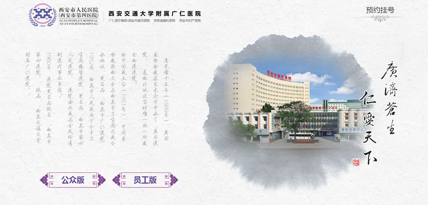 西安市第四醫(yī)院位于陜西省西安市解放路21號,始建于1898年,是一所集醫(yī)療、教學、科研、急救、預防、康復、保健為一體的綜合性三級甲等醫(yī)院,是全國優(yōu)質護理服務示范工程先進單位、全國醫(yī)院管理年活動先進單位,也是西安市醫(yī)保定點醫(yī)院。