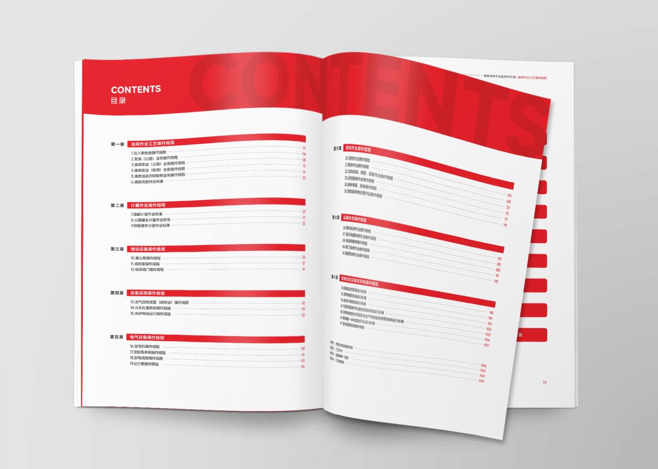 做好油庫的安全生產(chǎn)管理,并非是一句空頭口號,而是有著實質(zhì)的規(guī)范制度,中國石化《油庫作業(yè)指導書匯編》,即旨在將管理制度更加清晰、系統(tǒng)的呈現(xiàn)出來。從設計師所考慮的視覺角度出發(fā),為將指導書內(nèi)容清晰明確的呈現(xiàn)出來,整體版面選擇“簡而不凡”的設計手法,避免繁瑣的裝飾素材堆積,并在色彩組合上,大面積用色只選用中國石化的標準色“紅色”及“白色”,以極簡的視覺效果,進一步明確油庫安全管理規(guī)章制度內(nèi)容,由此發(fā)揮指導書的真正作用。
