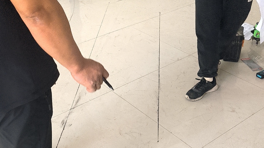 設(shè)計方案,雖是在經(jīng)過對實際空間進行真實核量的基礎(chǔ)上而產(chǎn)生的,但在創(chuàng)作過程中,圖紙與實際空間的尺寸及角度難免會出現(xiàn)偏差。為避免后期尺寸合縫等問題,在正式入場前,項目設(shè)計、施工團隊及客戶方相關(guān)人員一同前往標本館原始場地,依據(jù)設(shè)計圖紙結(jié)構(gòu),進行劃線復核,并借此判斷展館整體動線、臨墻間隔、墻體角度等問題,最大程度保證展館落地的合理性及可行性。