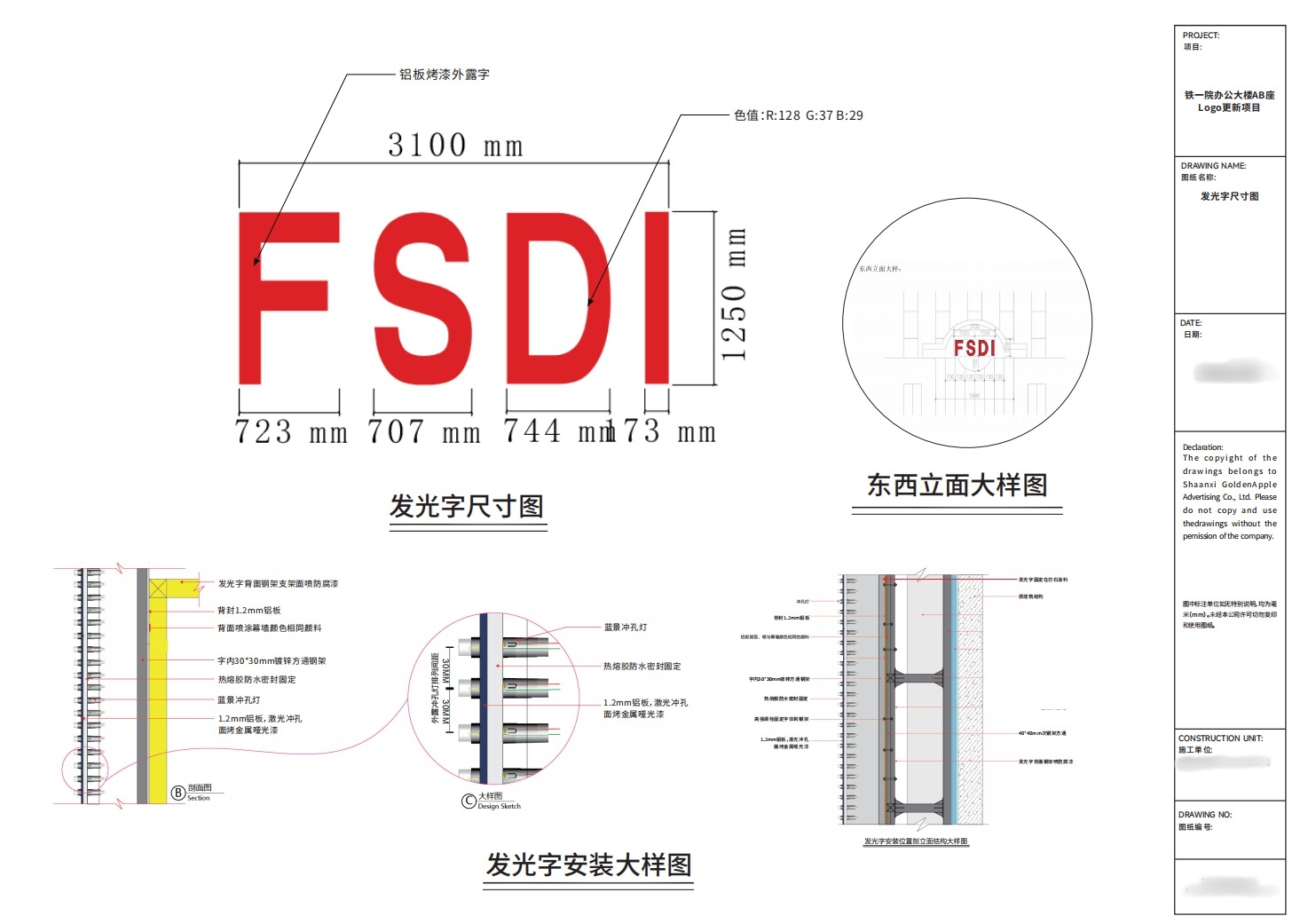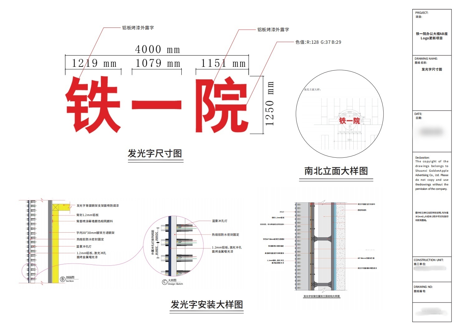 本項目所服務企業(yè)VI色為藍色和紅色,而目標安裝樓體外立面為灰色,因此相較而言紅色在白天或夜晚效果均更為亮眼;發(fā)光字大小則結合實際樓棟參數(shù)及安裝點位可用尺寸,確保最終比例達到可視可識要求,最大化發(fā)揮其表示作用!