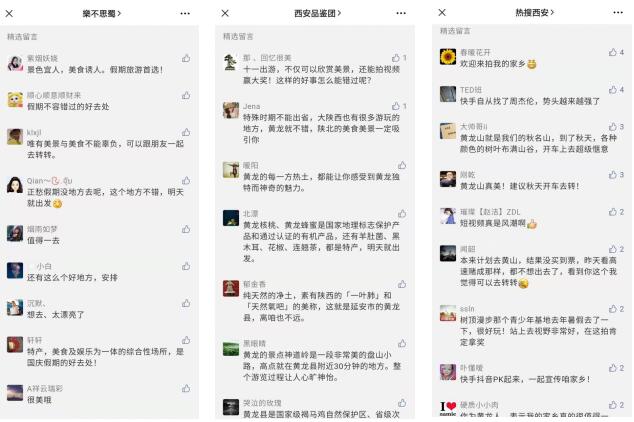 還有廣播廣告、地鐵語音廣告以及線上投放微信公眾號軟文、微博大V推文等新媒體宣傳稿件,有效地將黃龍旅游品牌形象和短視頻挑戰(zhàn)賽活動信息傳遞給有車族、上班族等群體,覆蓋陜西省內(nèi)主要目標受眾達800萬之多。