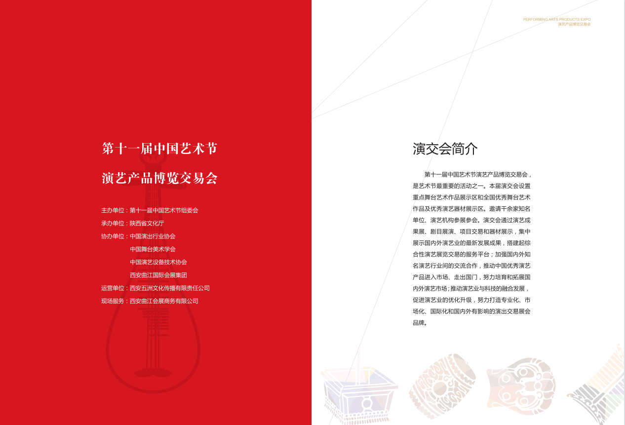 下面將著重呈現(xiàn)第十一屆中國藝術(shù)節(jié)演藝產(chǎn)品博覽交易會的整體規(guī)劃及設(shè)計,演交會于2016年10月在曲江國際會展中心盛大開幕,來自全國各省市文旅局及文藝行業(yè)企業(yè)參展。