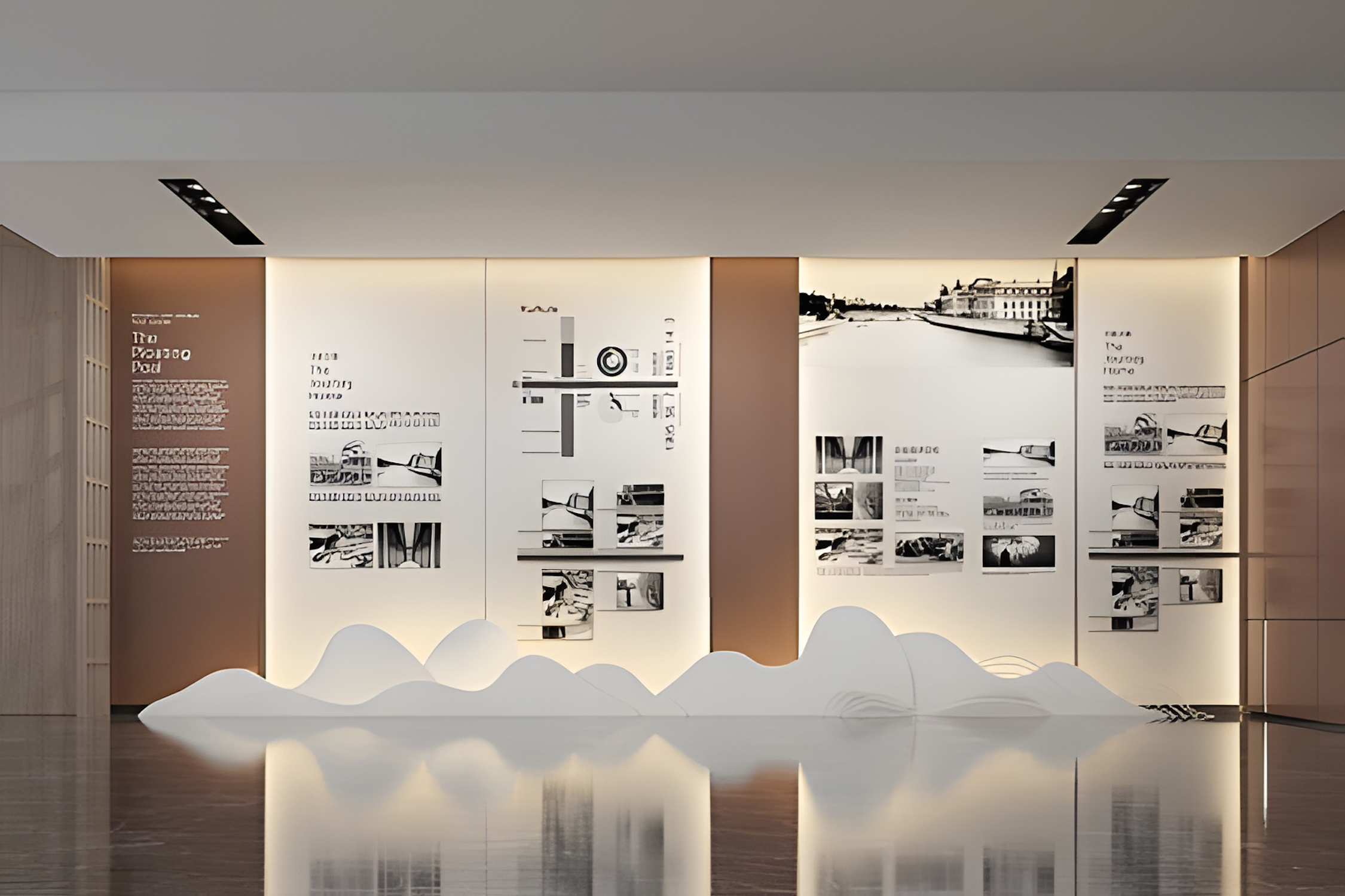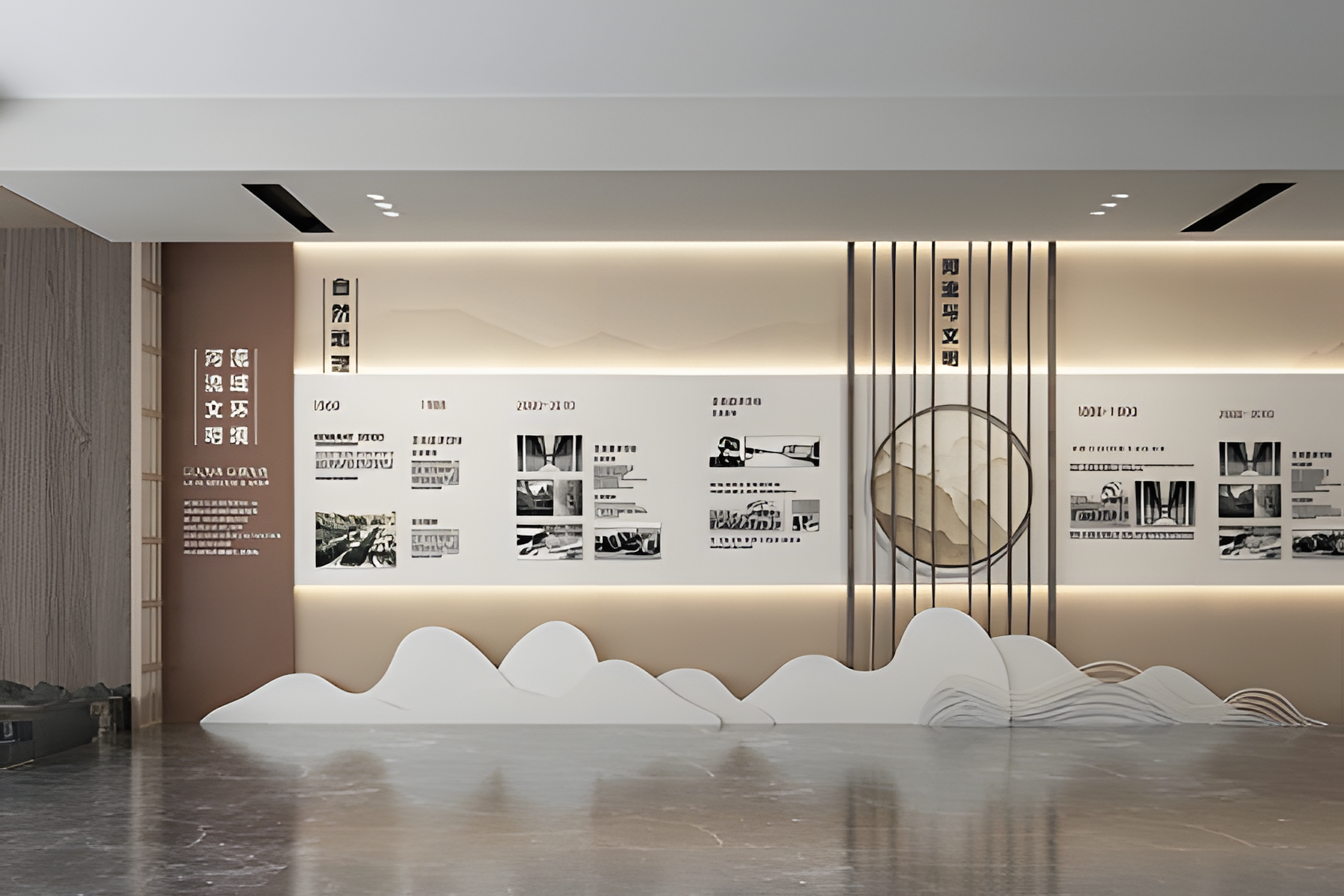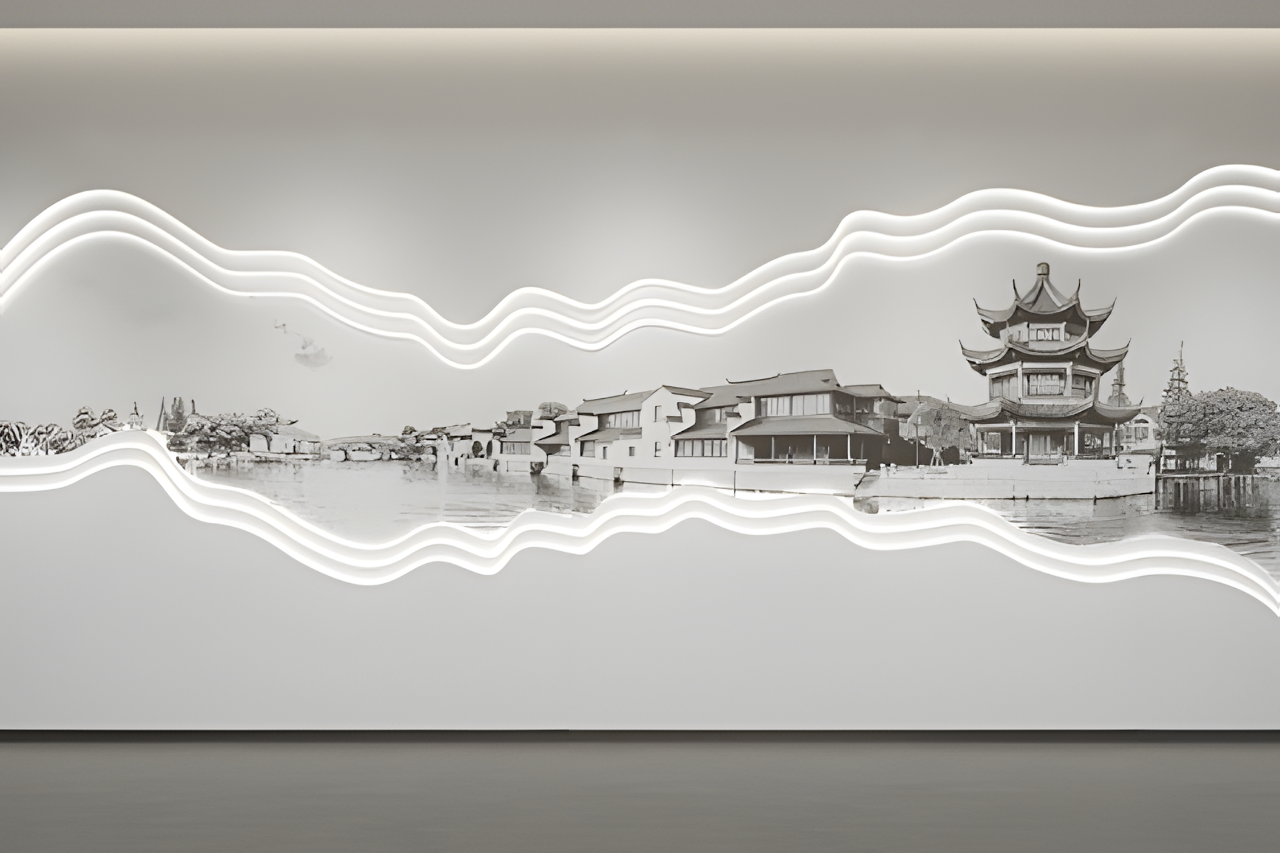 跳出二維視覺局限,創(chuàng)新運用雕塑造型、浮雕工藝及懸掛藝術(shù)裝置,為文化展示空間注入立體生命力。通過高低錯落的空間層次與虛實結(jié)合的藝術(shù)處理,打造出極具視覺沖擊力的立體場景,讓靜態(tài)墻面煥發(fā)出鮮活的藝術(shù)感染力。