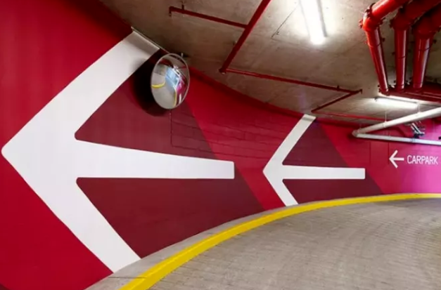 指停車場內(nèi)部墻面標識,一般用黃色、黑色相間表示,追求特色個性的停車場可以采用豐富的色彩來打造一個簡單大氣的停車環(huán)境?;蛘咴趬γ孀鏊囆g(shù)處理,比如懸掛藝術(shù)作品、繪制彩繪等,顏值頓時提升了不少。